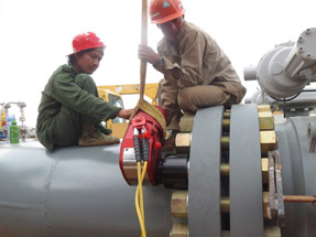 聚頂機械針對化工廠裝備公司的情況,派遣了有現(xiàn)場經(jīng)驗的技術(shù)員前往查看,現(xiàn)場工況相對不是很復(fù)雜,標(biāo)配的液壓扳手就能解決,但也存在較為特殊的情況,如法蘭連接處不是平面,夾角不是垂直或者工作空間狹小等情況,聚頂機械公司從用戶的角度出發(fā),給出的解決方案不光滿足工作要求